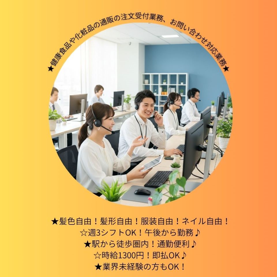 【長期】週3日★時給1300円★午後勤通販注文受付業務