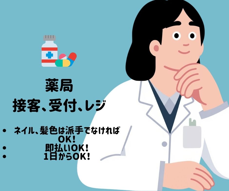 即給可!時給1400円+交通費!薬局での受付接客レジ作業