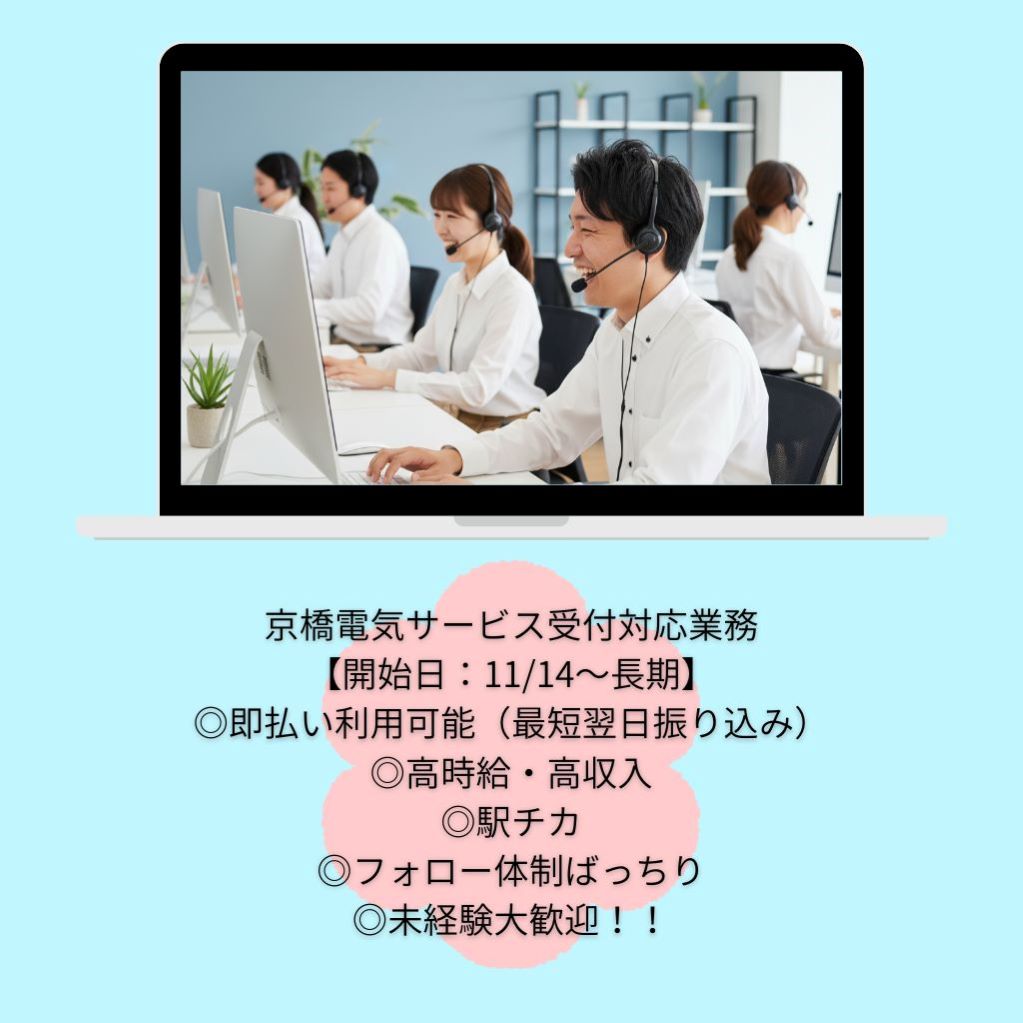 《高時給1600円♪》京橋電気サービス受付対応業務