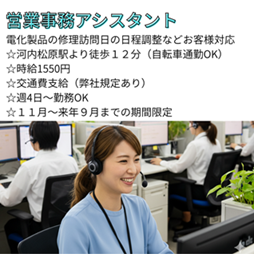 【高時給1600円】土日祝休み♪営業事務アシスタント業務