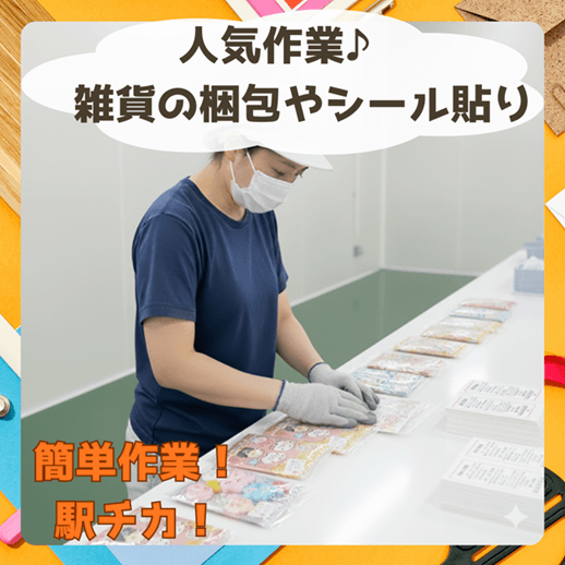 【ひめじ別所】駅チカ★人気★雑貨用品の梱包シール貼り★