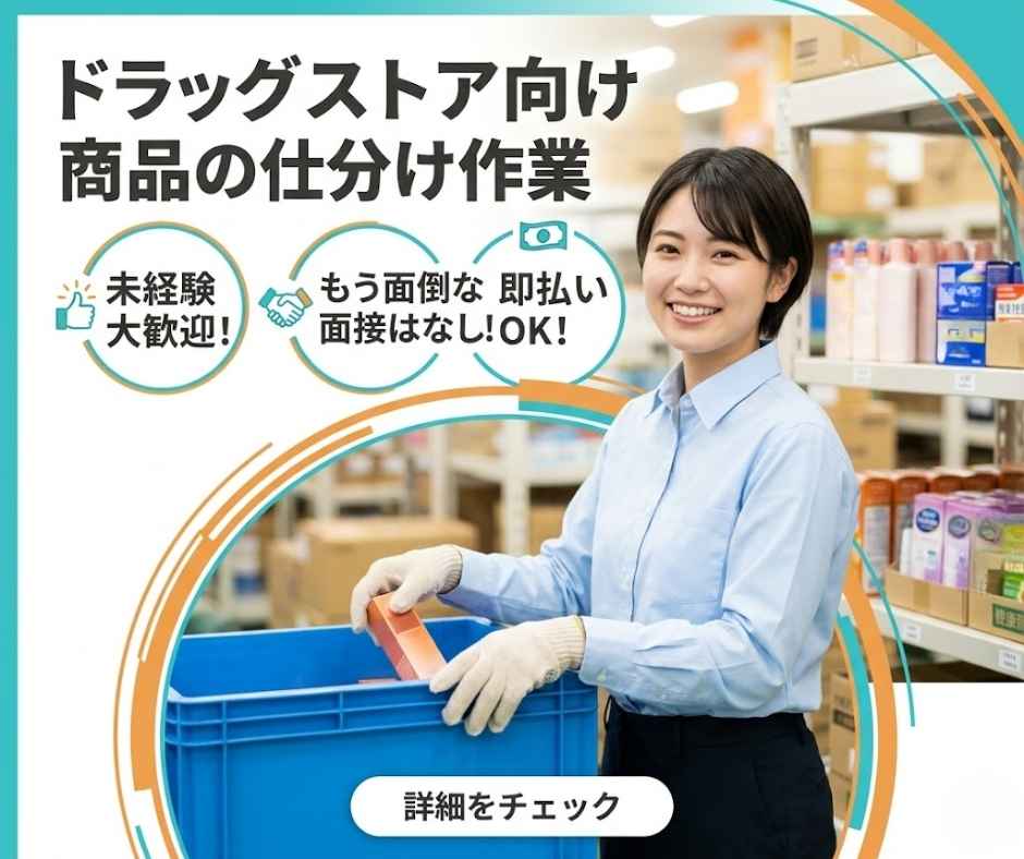 *早島☆時給1100円☆倉庫内でドラックストア商品をチェック!