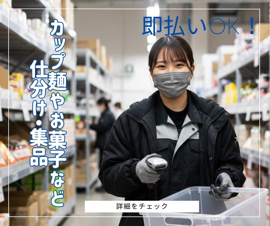 【即払い利用可能】 お菓子の仕分け&整理バイト!