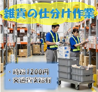 交通費支給!即払利用可【丸亀市蓬莱町】雑貨仕分け作業