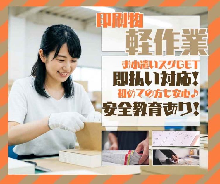 1100円/未経験からスタート!印刷物の軽作業