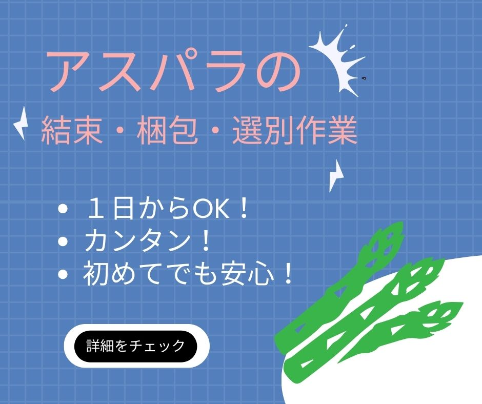 $【杵島郡】時給1030円アスパラの結束・包装・選別作業☆