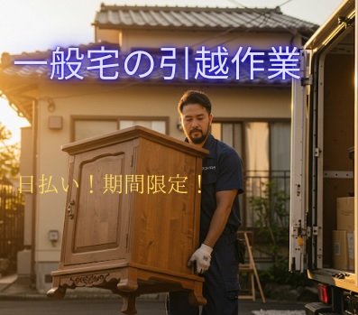 【業務内容】一般宅の引越作業【詳細】一般宅での家具・家電製品の搬入・搬出・開梱・片づけ作業など