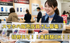 スマホショップでの商品サービスの説明、販売・接客及びその他付随業務の人員を募集しております。