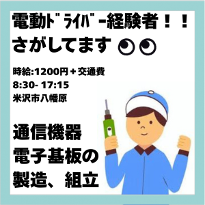 【12月中旬~】電ドラ経験を活かせる!組立スタッフ
