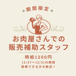 【12月限定】お肉屋さんでの販売補助【高時給】