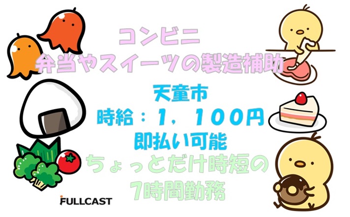 天童市◆ちょっと時短◆即払可!コンビニ商品の製造補助