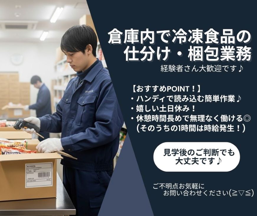 簡単作業のみ!『冷凍食品類の仕分け・梱包業務♪』