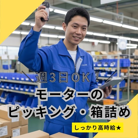高時給!!【足利市】モーターのピッキング・箱詰め作業♪