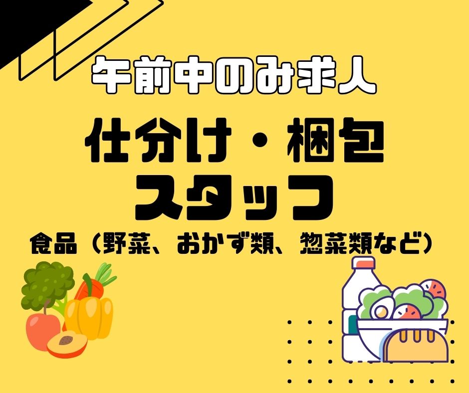 食品(野菜、おかず類、惣菜類など)の出荷にともなう仕分け、箱詰め作業です。
