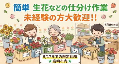 【高崎市】即払!1,300円/生花の荷卸し、仕分け作業!