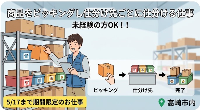 高崎市内で見つけた!短期バイト♪仕分けスタッフ大募集!