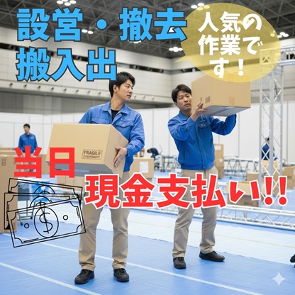 【高崎市】当日払/時給1200/イベント設営撤去/人気作業♪