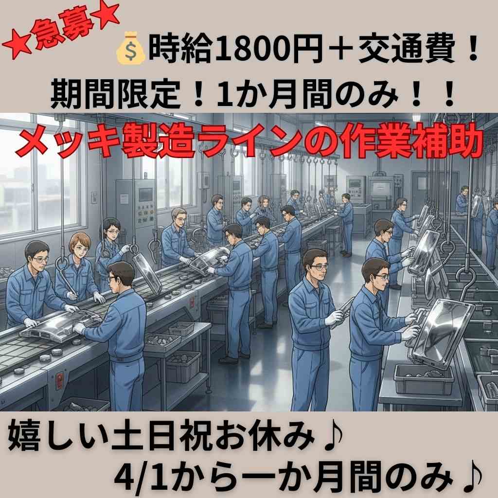 ★急募のため高時給1,800円!メッキ製造ラインの作業補助