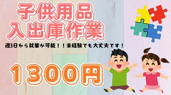 未経験でもOK!子供用品の入出庫作業のお仕事です...