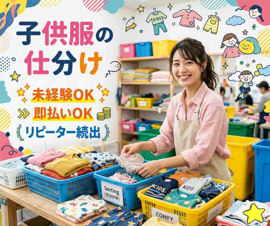 $即払い♪ 時給1250円!子供服の仕分けスタッフ募集!