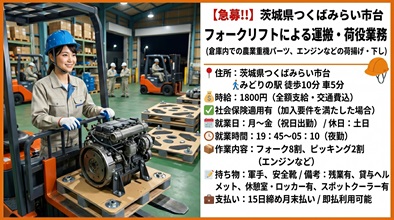 \高時給1800円!/フォークリフト作業(つくばみらい市)