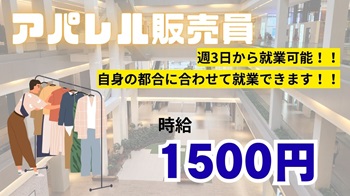 ★★高時給1500円★★アウトレット内でのアパレル販売