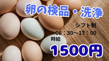 高時給1500円★たまごの検品・洗浄作業★マイカー通勤OK