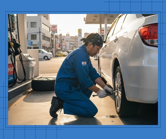 時給1500円/ガソリンスタンドで接客・タイヤ交換など