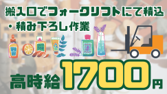 時給1700円/フォークリフトで化粧品積込作業など【所沢市】