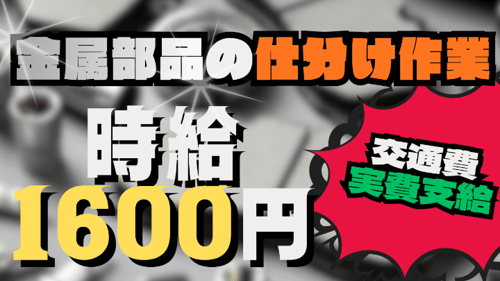 時1600円+交通費◎金属部品の箱詰め・洗浄【草加市】