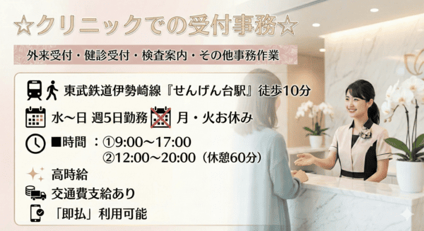 【時給1600円】クリニックでの受付事務≪せんげん台駅≫