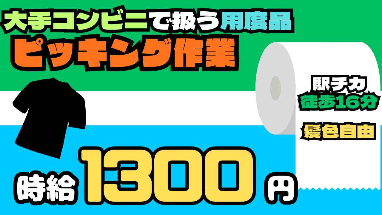時給1300円/大手コンビニ用度品のピッキング【越谷市】