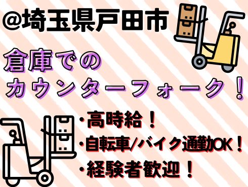【車・バイク通勤Ok】高時給★倉庫内カウンターフォーク!
