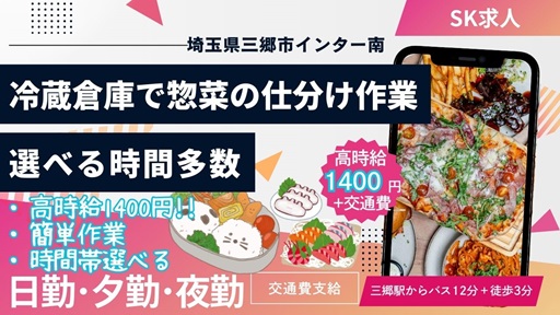 募SKSK【三郷】時給1400+交|お惣菜の仕分け業務