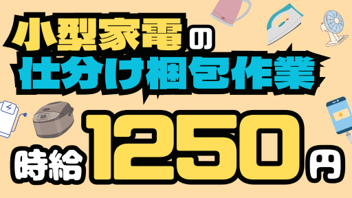 【小型家電仕分け梱包作業】時給1250円!土日祝休み!