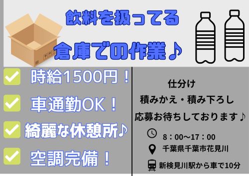 【高時給1500円】飲料の仕分け・積みかえ積み下ろし作業