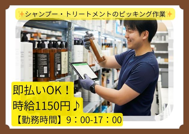 ★キレイな倉庫で大募集★時給1150円!! 日用品ピック・梱包