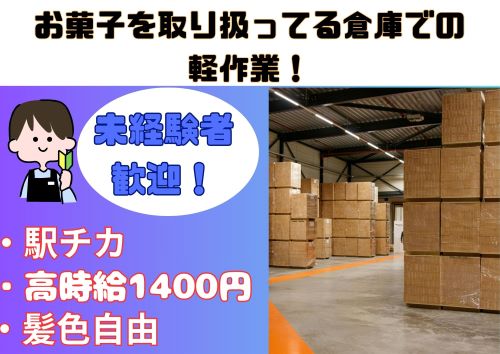 時給1400円!お菓子を取り扱ってる倉庫での軽作業!