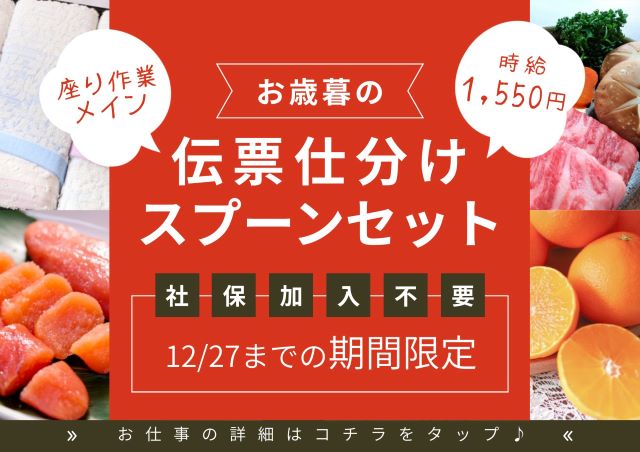 ▽社保不要▽時給1550円!お歳暮の伝票付け合わせ☆彡