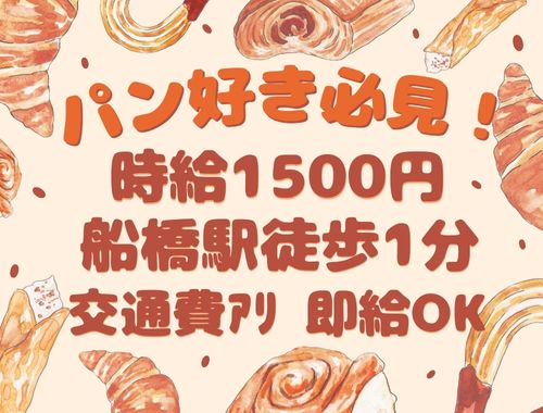 船橋駅徒歩1分!時1500円+交通費★パンの販売♪