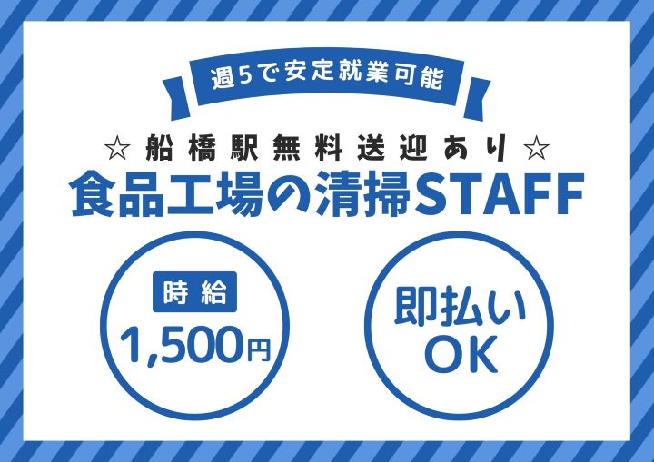 【週5】有名食品工場で清掃STAFF募集☆無料送迎あり!
