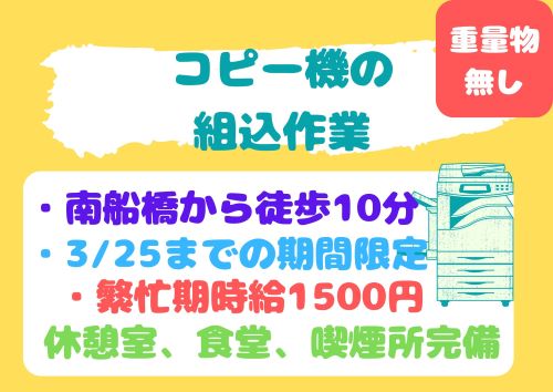 [重量物無し]南船橋×最大時給1500円♪×組込作業