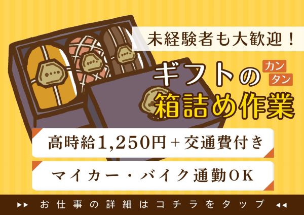 ◆高時給+交通費付◆手軽に出来る!!ギフトセットの箱詰め等