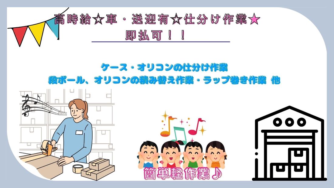 高時給1350円☆車・送迎有☆仕分け作業★即払可!!