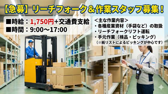 オープニング♪【高時給フォーク】車通勤ok・手元作業無し