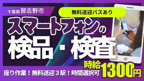 SKP【習志野市】時1300円!交通費有/スマホ検査作業♪♪