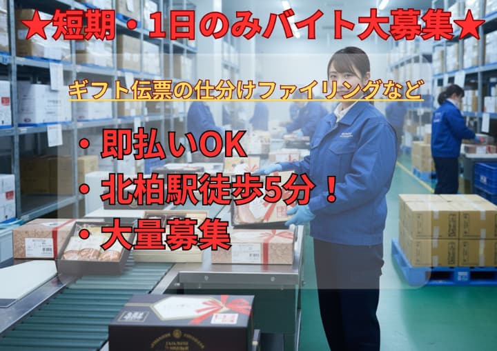 時給1300円!北柏駅徒歩5分♪空調完備の倉庫で軽作業