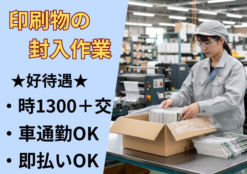 【車通OK】時1300円+交500★印刷物の封入作業(#^.^#)