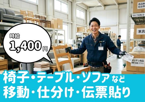 時給1,450円/什器のピッキング、仕分け、積み込み作業