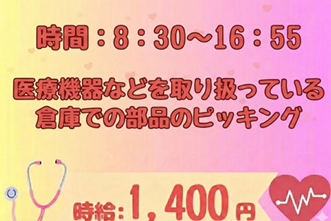 時給1400円☆彡医療機器のピッキングなど♪